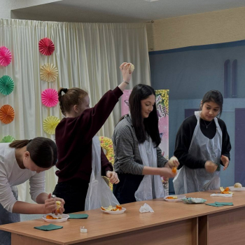 Задача — быстрее всех очистить апельсин, сохранив дольки целыми. Участницы проявили ловкость и сноровку, а зрители с интересом следили за ходом соревнования.