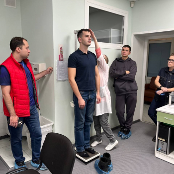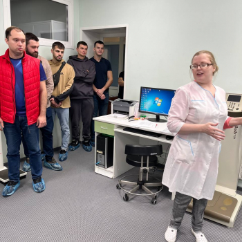 Аспиранты и соискатели посетили лабораторию функциональной диагностики, где детально ознакомились с современными методами оценки и коррекции состояния организма спортсменов и любителей здорового образа жизни. Теория сразу же была подкреплена практикой: желающие прошли комплексную диагностику, включающую биоэмпидансный анализ состава тела (БАСТ) и стабилометрию. Последняя позволила будущим учёным на собственном опыте оценить функции вестибулярного аппарата и механизмы координации движений.
