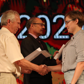 Трогательным моментом стал выход на сцену первых выпускников УралГУФК. Церемония вручения дипломов в 2024 году проходила в юбилейный, 50-й раз. Ее гостям стали ветераны спорта и люди, внесшие огромный вклад в развитие физической культуры как на Южном Урале, так и по всей стране. Порядка трех десятков первых выпускников нашего Университета спустя 50 лет вновь поднялись на сцену. Полный зрительный зал наградил их громкими аплодисментами.