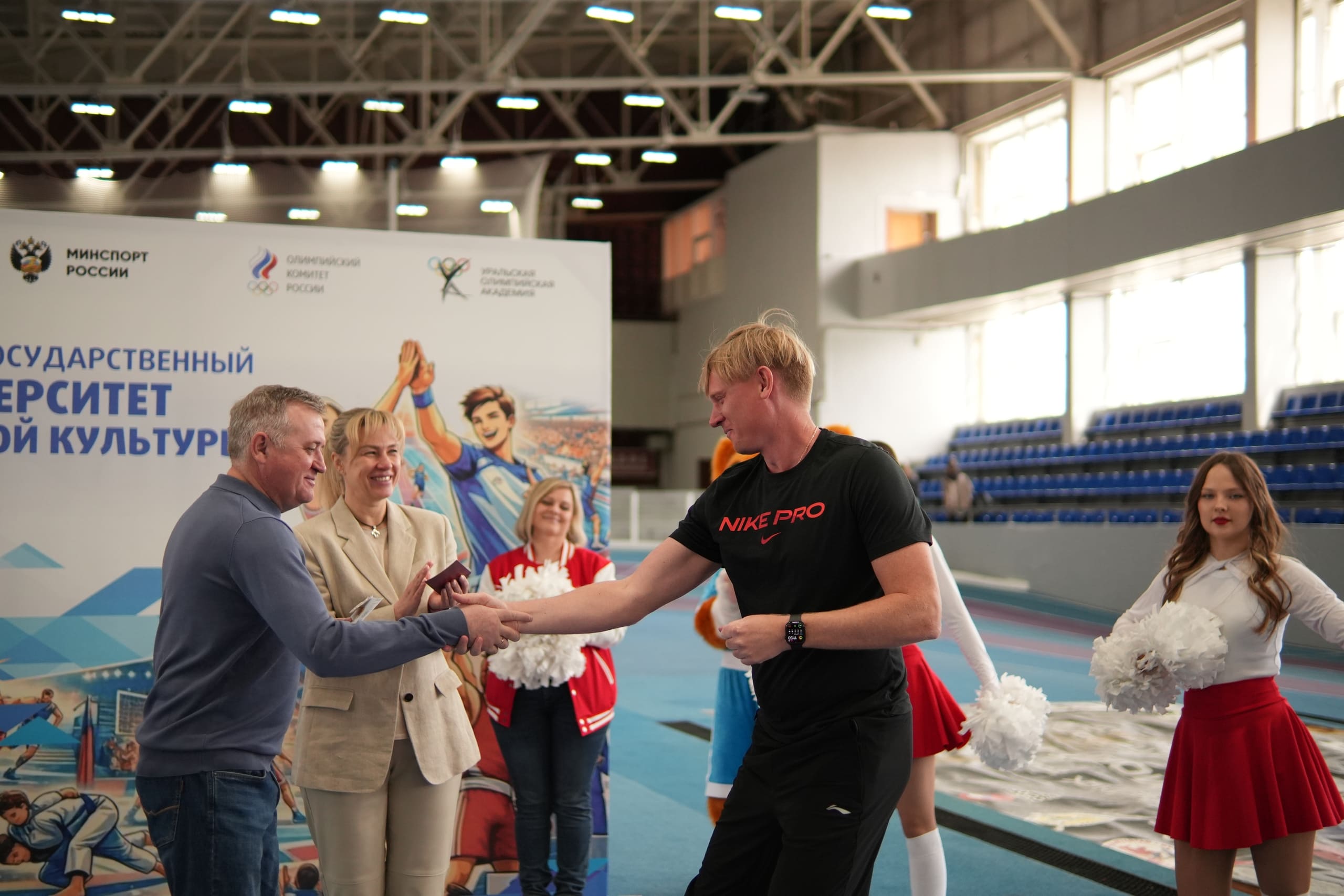 - и.о. ректора УралГУФК Виталий Иванович Игнатенко и проректоры вуза Светлана Александровна Захарова, Михаил Владимирович Габов.