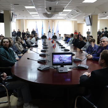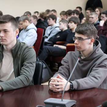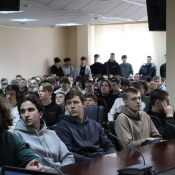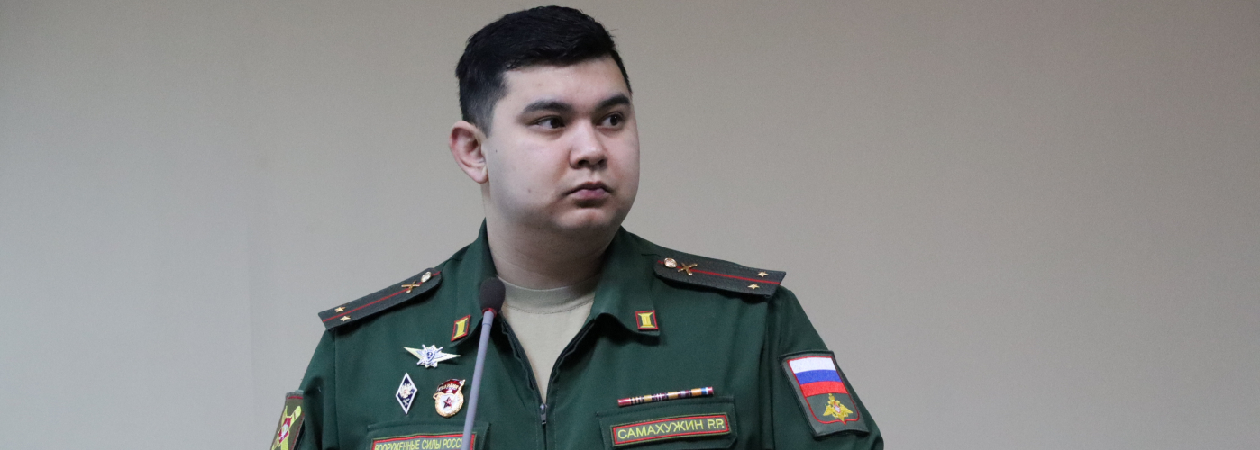 Радмир Радисович Самахужин с ходе встречи обсудил со студентами вопросы развития войск беспилотных систем и их роли в обеспечении национальной безопасности.