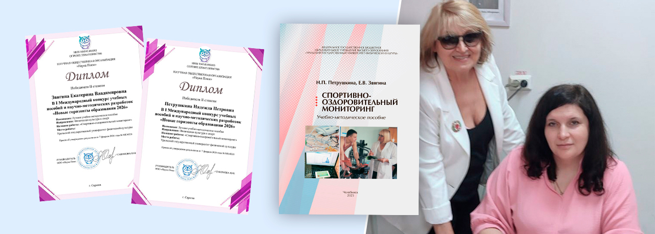 Сотрудники кафедры физиологии Петрушкина Надежда Петровна и Звягина Екатерина Владимировна вошли в число призеров 1 Международного конкурса учебно-методических пособий и научно-методических разработок «Новые горизонты образования 2026» в номинации: Лучшее учебно-методическое пособие, направление: Физическая культура и спорт.